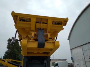 Papildu sānu konveijers ar BYPASS funkciju nodrošina lielāku darba elastību un efektīvu materiālu plūsmas kontroli objektā. Modernā PLC IP67 vadības sistēma ar 7” LCD ekrānu un radio tālvadību ļauj operatoram precīzi un droši kontrolēt iekārtu pat putekļainos un vibrācijas ietekmētos apstākļos.